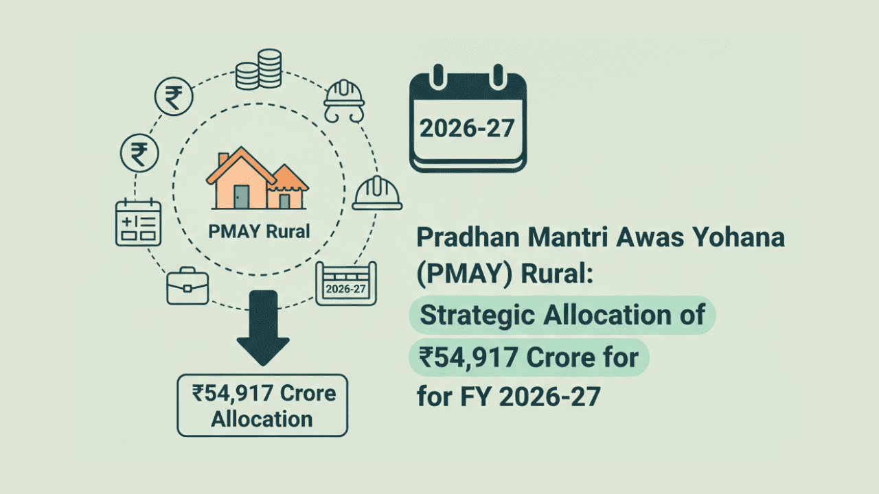 In a move to accelerate the “Housing for All” mission, the Government of India has announced a substantial fiscal commitment of ₹54,917 crore for the Pradhan Mantri Awas Yojana-Gramin (PMAY-G) for the financial year 2026-27. This strategic allocation, unveiled as part of the Union Budget 2026-27, reflects a significant 69% increase over the previous year’s … Read more